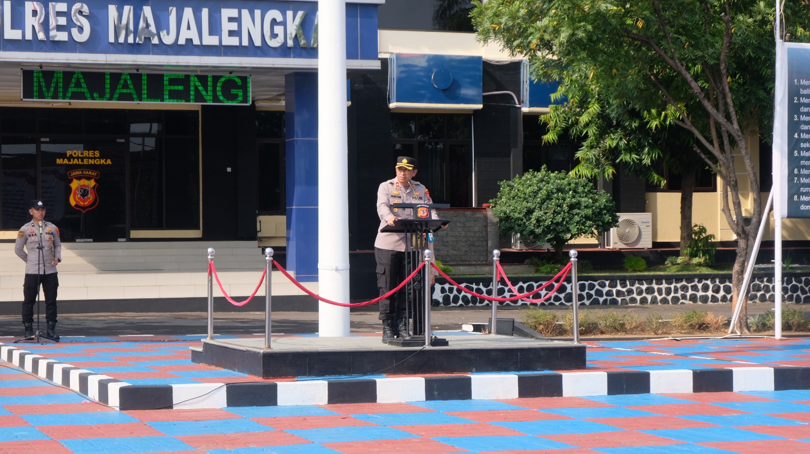 Majalengka, – Wakil Kepala Kepolisian Resor Majalengka, Kompol Asep Agustoni, S.E., M.M., memimpin apel pagi jam pimpinan yang dilaksanakan di halaman Mapolres Majalengka, Senin (20/10/2025). Apel tersebut diikuti oleh seluruh pejabat utama, perwira, bintara, dan ASN Polres Majalengka.