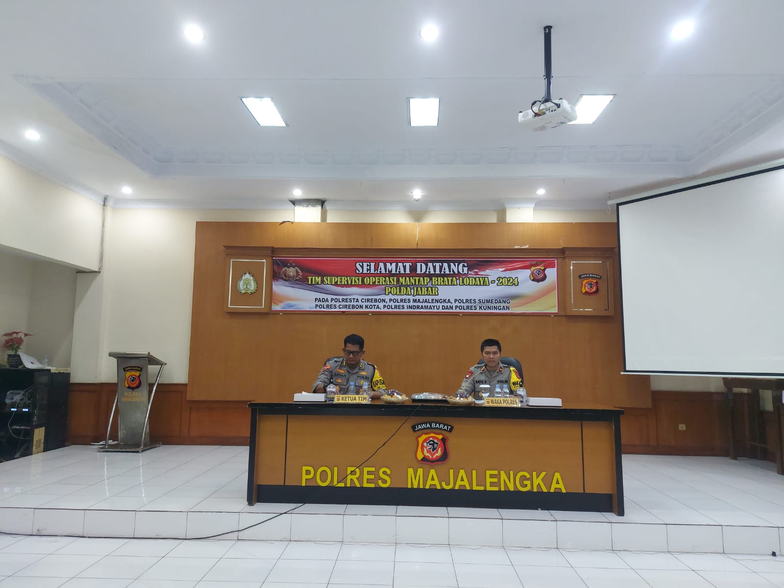 Majalengka, – Wakapolres Majalengka, Kompol Bayu Purdantono, S.I.K., M.I.K., dengan penuh antusias mewakili Kapolres Majalengka, AKBP Indra Novianto, S.I.K., M.Si., CPHR, menyambut Tim Supervisi Operasi Mantap Brata (OMB) Lodaya-2024 dari Polda Jabar. Kegiatan ini melibatkan beberapa Polres di wilayah tersebut, termasuk Polres Majalengka, Polresta Cirebon, Polres Sumedang, Polres Cirebon Kota, Polres Indramayu, dan Polres Kuningan.