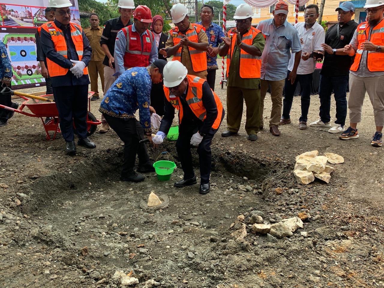 Kegiatan kemudian dilanjutkan dengan prosesi peletakan batu pertama oleh Wali Kota Sorong, Septinus Lobat, SH., M.PA, didampingi Ketua DPRD Kota Sorong serta para kepala OPD. Momen tersebut menjadi simbol dimulainya pembangunan Ruang Terbuka Publik Remu yang diharapkan menjadi ikon baru kebanggaan masyarakat Kota Sorong.