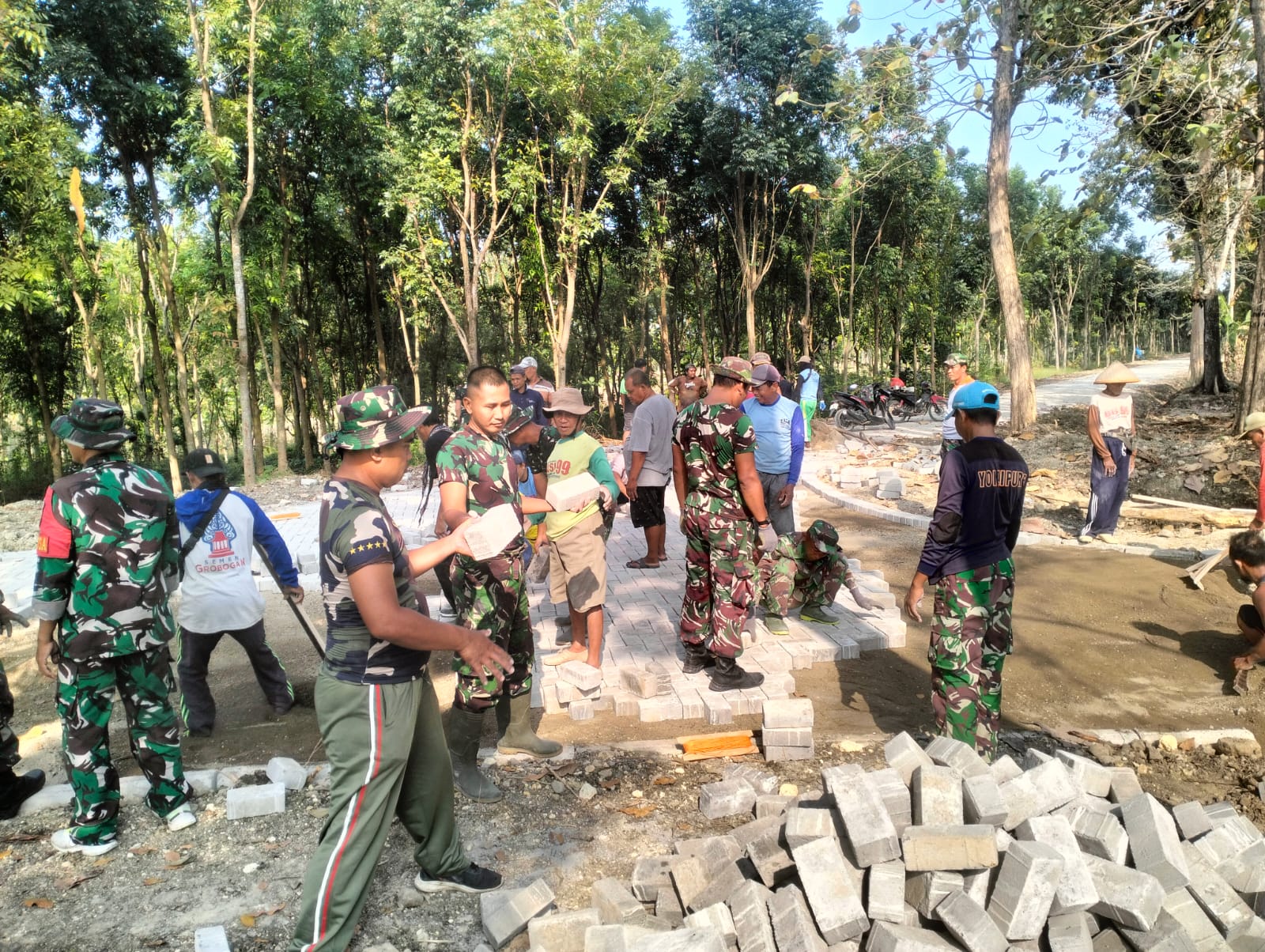 NGAWI, BUSERJATIM.COM GROUP– Dalam rangka Pembinaan Teritorial (Binter) guna mempertebal budaya kegotong-royongan bermasyarakat, Anggota Koramil 0805/01 Ngawi Sertu Aris Sukamto bersama warga Lingkungan melaksanakan Kerja Bakti perbaikan Pavingisasi jalan di Lingkungan Bugisan Rt/Rw 03/01 Kelurahan Margomulyo, Kec/Kab Ngawi, Minggu (27/07/2025).