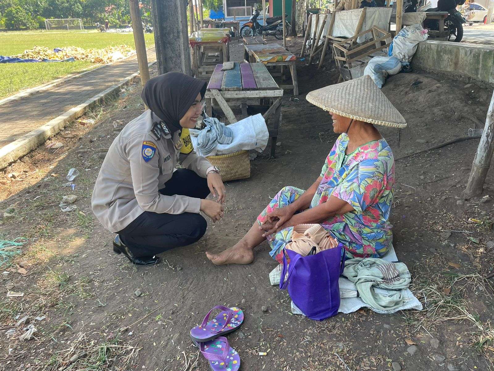 Briptu Intan melaksanakan dialogis serta menjalin silaturahmi kepada ibu-ibu yang sedang istirahat setelah menjemur padi,Briptu Intan melaksanakan dialogis sekaligus menyampaikan imbauan dan pesan-pesan kamtibmas. Bhabinkamtibmas memberikan bimbingan dan penyuluhan kepada ibu warisah untuk tetap semangat selalu jaga kesehatan ditengah cuaca terik saat ini.