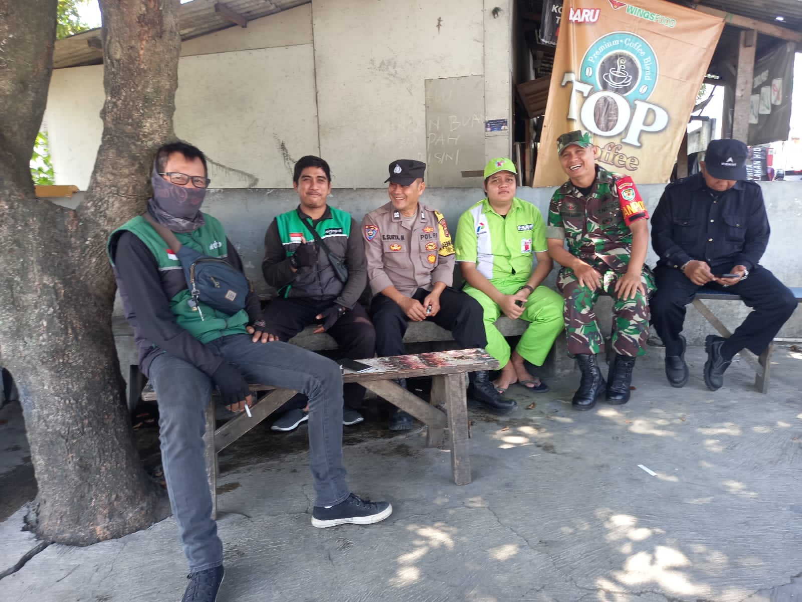 Dalam kunjungan ke Komunitas Ojeg Online ini Bhabinkamtibmasdan Bhabinsa bertemu dengan Sdr. Maman selaku yang ditertuakam dalam Komunitas ini yang berlokasi sekitar SPBU 34.166.02 Jalan Raya Dramaga, Sdr. Maman pun mengafresiasi dengan tugas Bhabinkamtibmas dan Bhabinsa selalu bersinergi dimana selalu hadir ditengah warga sehingga akan menimbulkan rasa nyaman di Warga dan sama – sama menjaga kamtibmas.