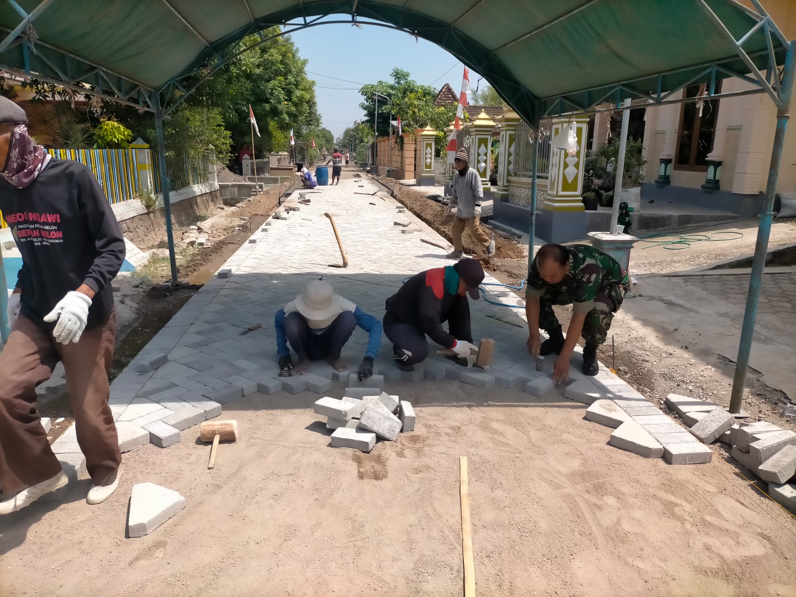 Ngawi,Buserjatim.com- Babinsa Koramil 0805/03 Geneng Serka Nursahid Bersama dengan masyarakat melaksanakan gotong royong melaksanakan Pemasangan Paving Jalan di Ds.kasreman, Kec. Geneng kabupaten ngawi,( Rabu 30 Oktober 2024).