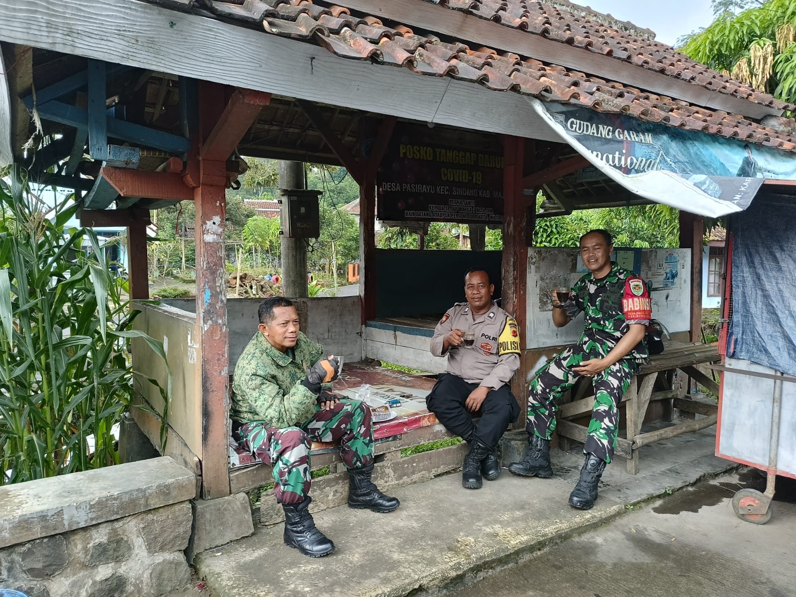 “Ngopi bersama siang ini, Kanit Samapta bersama Danramil dan Babinsa laksanakan di Poskamling Desa Pasirayu Kecamatan Sindang Wilayah Hukum Polsek Sukahaji ngopi bareng sembari diskusi terkait situasi Kamtibmas.” Ungkapnya.