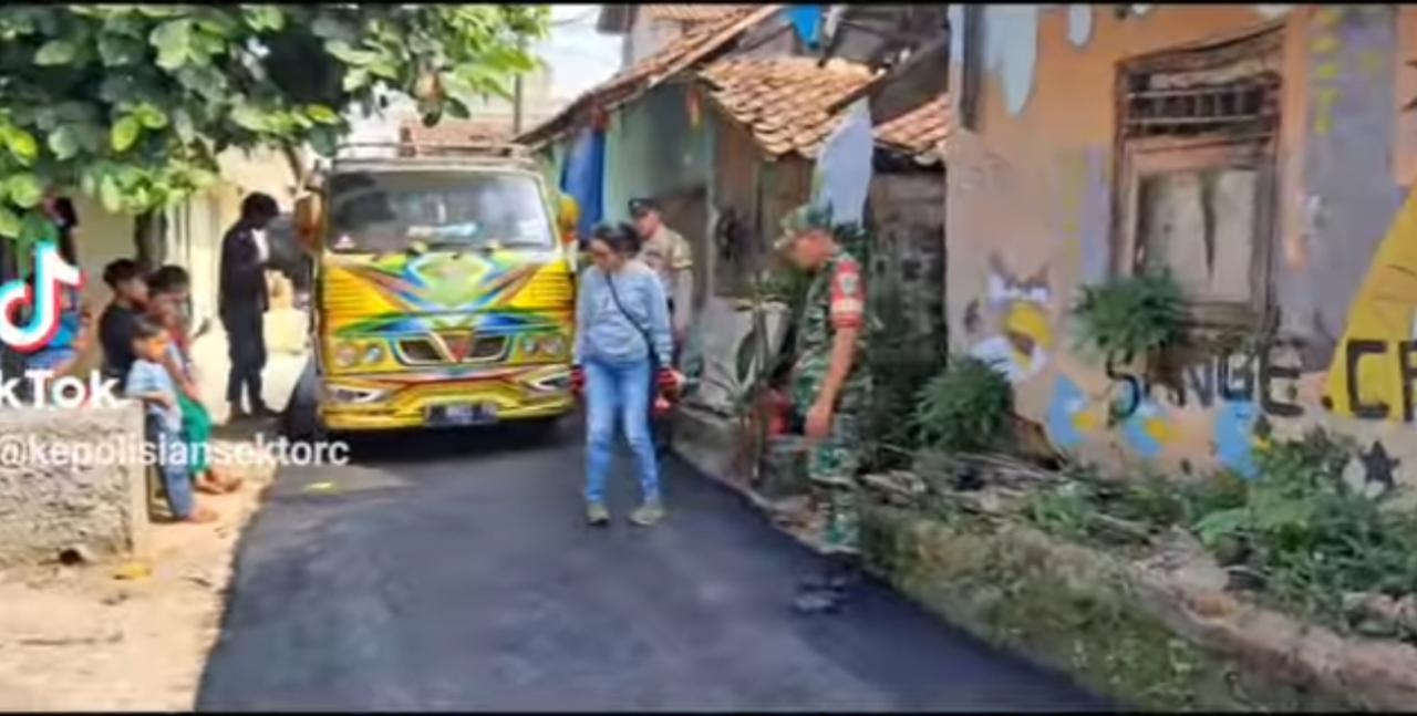 Wujud Sinergitas TNI-Polri, Polsek Ciampea Polres Bogor Monitoring Pengaspalan Jalan Desa Cihideung Udik