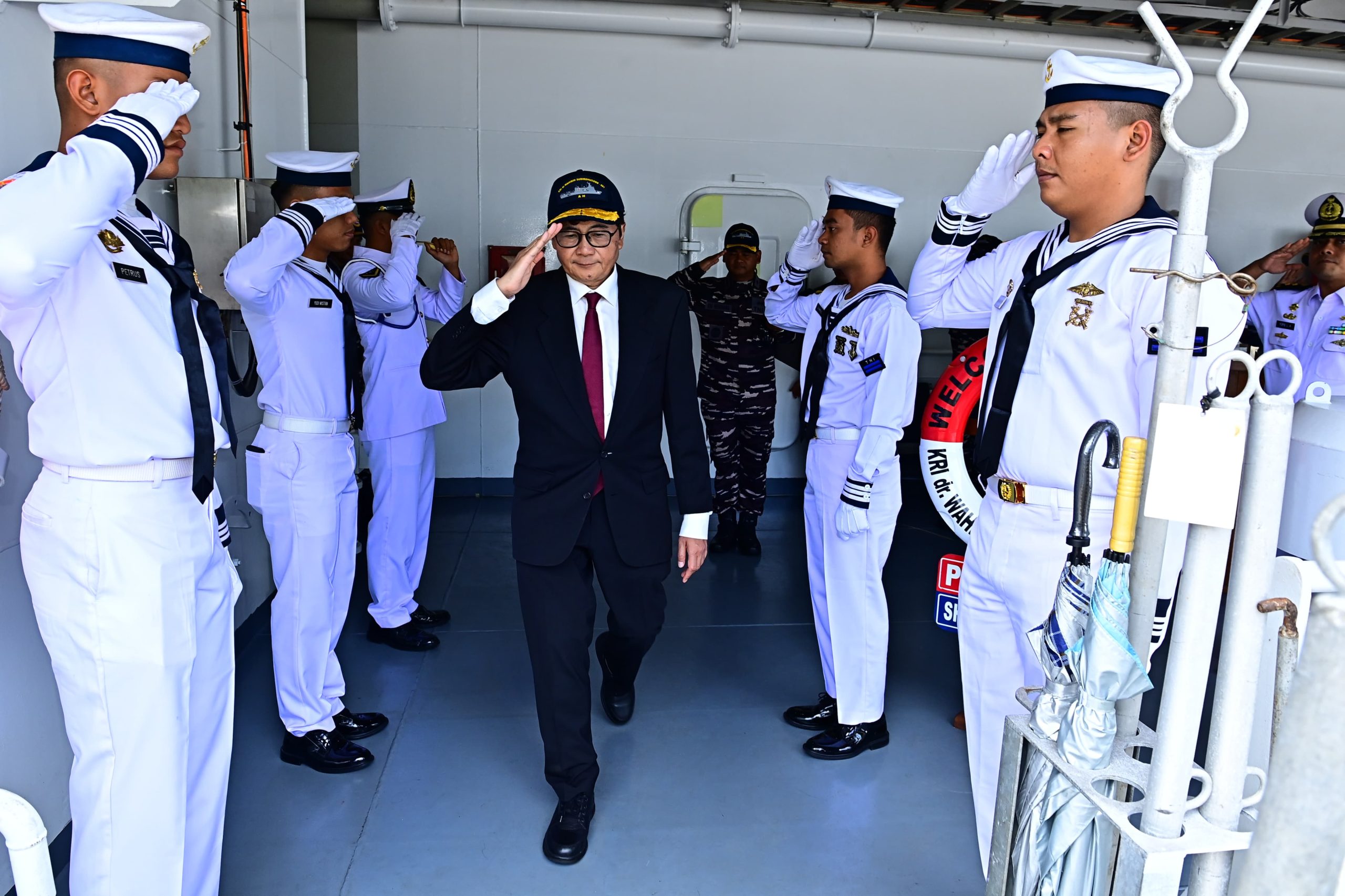 Kedatangan Satgas Port Visit 2024 disambut oleh Duta Besar RI (Dubes RI) atas Australia dan Vanuatu Dr. Siswo Pramono, Askomlek Pangkoarmada RI Laksamana Pertama TNI Ilham Army Ritonga, S.H, Atase Pertahanan KBRI Canberra Laksma TNI Yusliandi Ginting, Atase Polri KBRI Canberra Brigjen Pol Tommy Aria Dwianto, Pabinlu KBRI Canberra Australia Brigjend TNI Sunaryo.