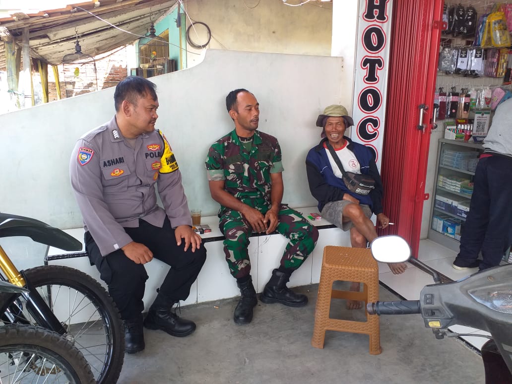Indramayu- Bhabinkamtibmas Polsek Lohbener jajaran Polres Indramayu Polda Jabar Bripka Ashari dan Babinsa Serka Wasdi melaksanakan kegiatan sambang dan berinteraksi dengan warga Desa Sindangkerta Kecamatan Lohbener Kabupaten Indramayu. Selasa (23/4/2024)