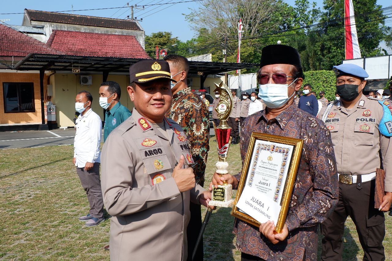 Dalam apel ini Kapolres juga memberikan penghargaan kepada pemenang lomba Satkamling Polres Blitar Kota Tahun 2023.