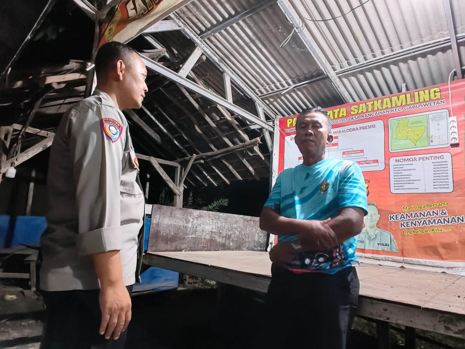 Bhabinkamtibmas Polsek Gabuswetan, jajaran Polres Indramayu Polda Jabar Bripka M. Sofyan Fanani, S.H., melaksanakan patroli malam hari dengan menyambangi Pos Satkamling Blok Plasah di Desa Rancahan, Kecamatan Gabuswetan, Kabupaten Indramayu, Rabu (16/7/2025).