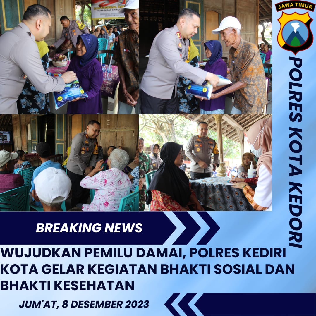 BUSERJATIM.COM || KEDIRI KOTA – Polres Kediri Kota melakukan bhakti sosial dan bhakti kesehatan di rumah Joglo Kel Semampir Kota Kediri