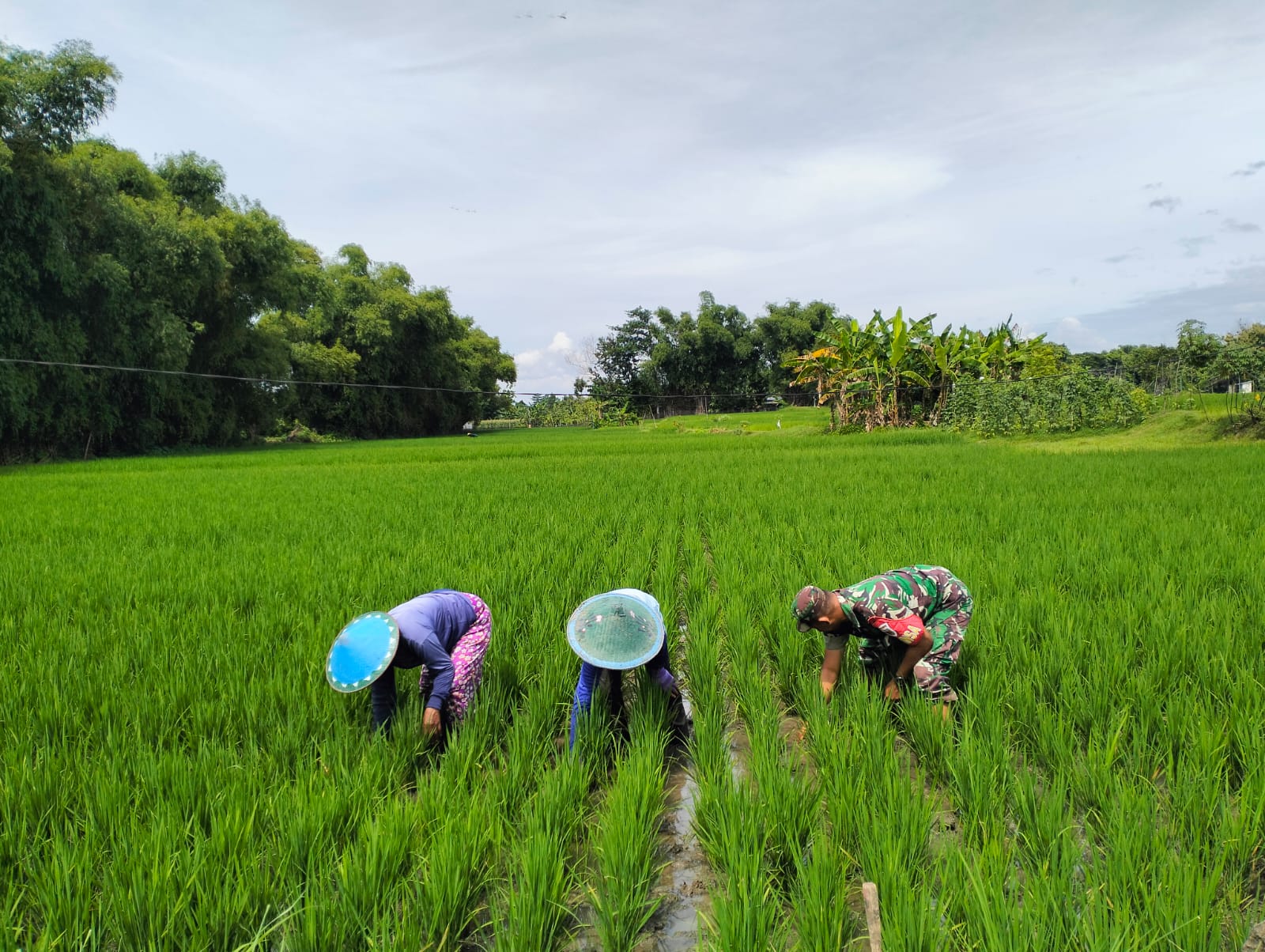 Ngawi,Buserjatim.com group-Pembinaan Teritorial dalam mewujudkan ketahanan pangan di wilayah terus ditingkatkan, Seperti yang dilakukan Serda Gaip Babinsa Koramil 0805/06 Kwadungan Kodim 0805/Ngawi dengan turun langsung ke sawah mendampingi kegiatan petani dalam kegiatan pendampingan perawatan tanam padi yang berada di Desa Budug Kec. Kwadungan Kab. Ngawi, Selasa (14/1/2025).