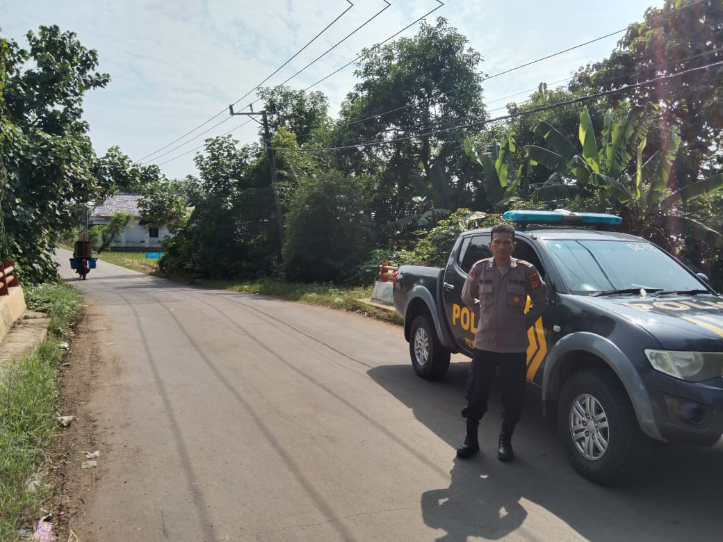 Terlihat personel Polsek Cikedung tampak berjaga di jalanan wilayah Kecamatan Cikedung, tepatnya di jalur yang sering dilalui warga dan kendaraan pengangkut hasil pertanian.
