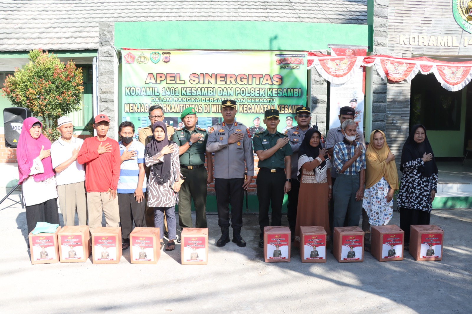 Setelah apel selesai kegiatan dilanjutkan dengan Pemberian Paket Sembako yang dibagikan secara simbolis kepada 10 Lansia dan Kaum Dhuafa di Wilayah Kecamatan Kesambi oleh Kapolres Cirebon Kota, Dandim 0614/Kota Cirebon yang diwakili oleh Kasdim Kodim 0614/Kota Cirebon, PJU Polres Cirebon Kota, Kapolsek Kesambi,para Bhabin dan Babinsa. Tutup Ipda Charis Efendi,S.H