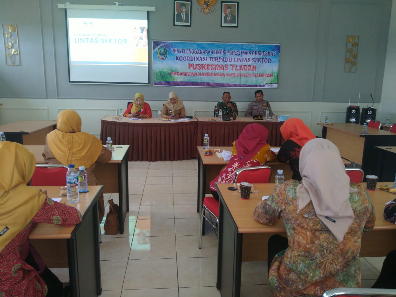Danramil 0804/10 kawedanan Kapten Inf Gunawan dalam sambutannya menyampaikan, pertemuan lintas sektor ini merupakan suatu pertemuan antar petugas Puskesmas dengan sektor terkait (lintas Sektoral) guna meningkatkan kerjasama tim, memantau cakupan pelayanan Puskesmas serta meningkatkan fungsi Puskesmas serta sebagai rapat koordinasi kesiapan pelayanan yang akan dilaksanakan oleh UPTD Puskesmas Tladan.